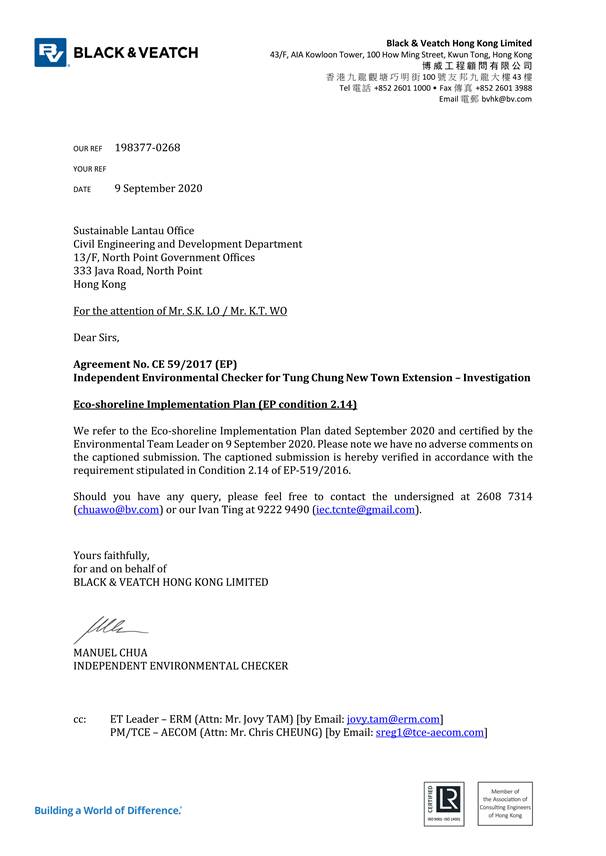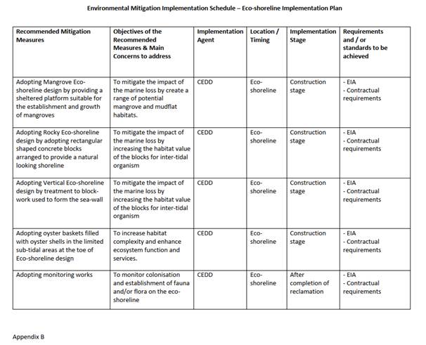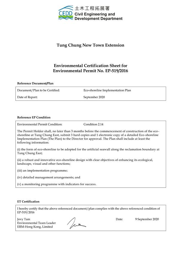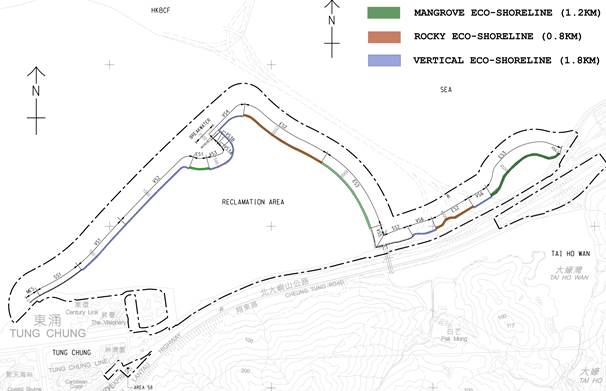 (i) the form of eco-shoreline to be adopted for the artificial seawall along the reclamation boundary at Tung Chung East;