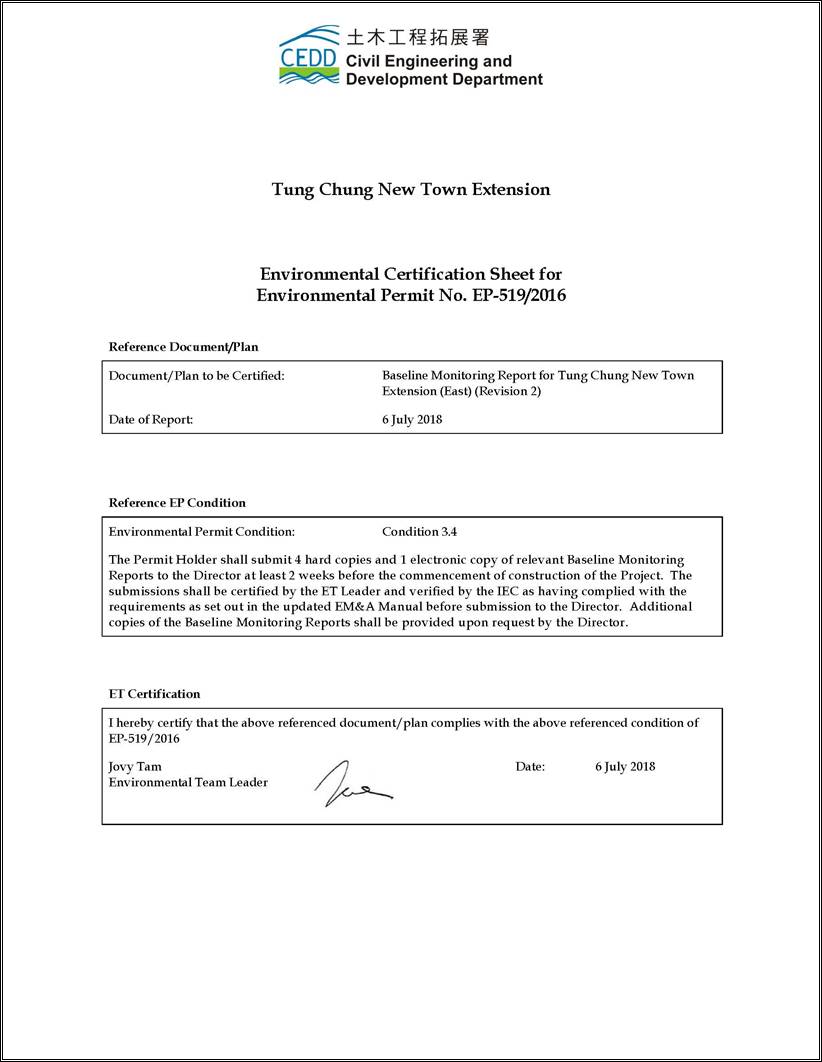 for Tung Chung New Town Extension. Deposited to EPD under Register No. AEIAR-196/2016
