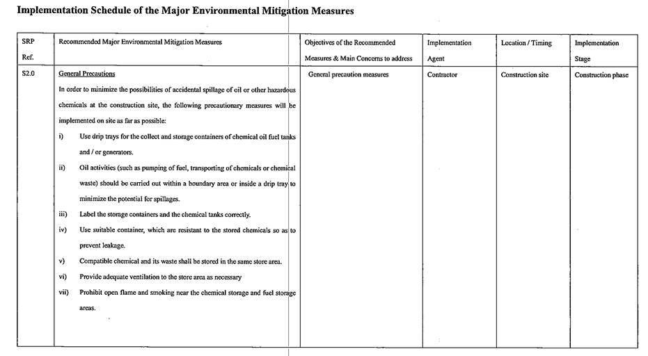 Appendix D Implementation Schedule of the Major Environmental Mitigation Measures