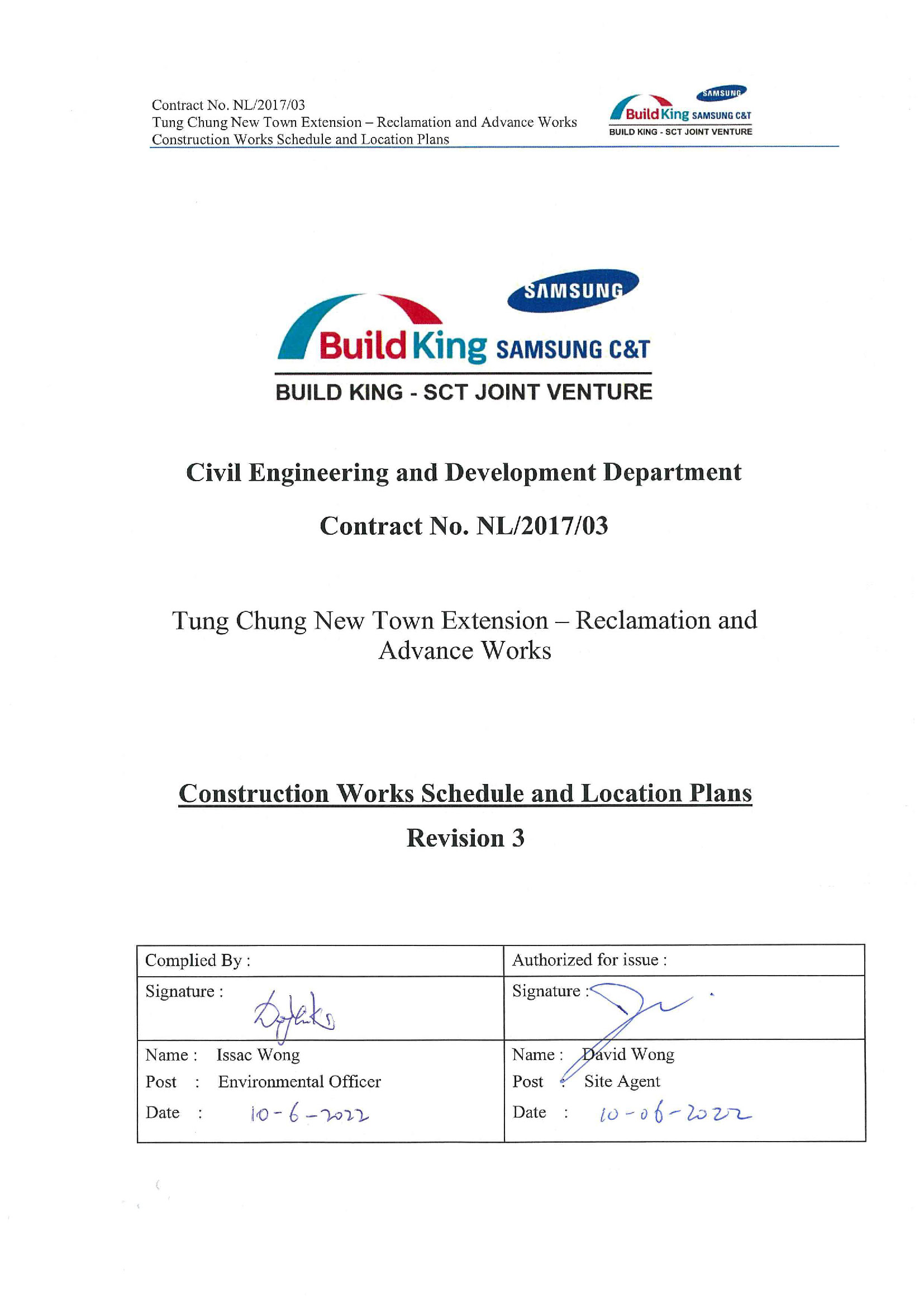 Build King – SCT Joint Venture (BKSCTJV) is the contractor appointed to undertake the reclamation works in Tung Chung East and the advance works for the Project. The works mainly comprise:-