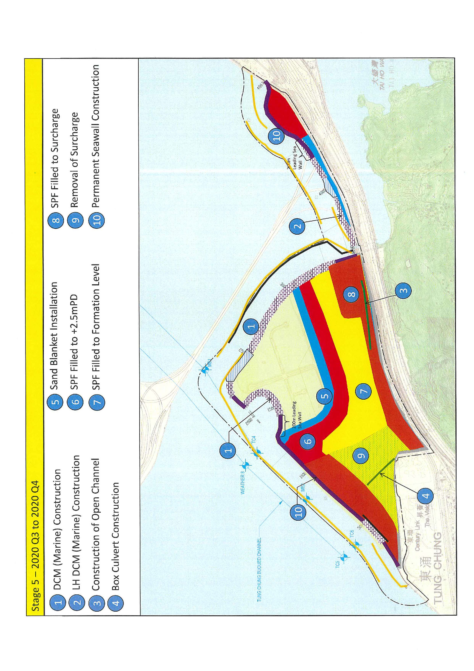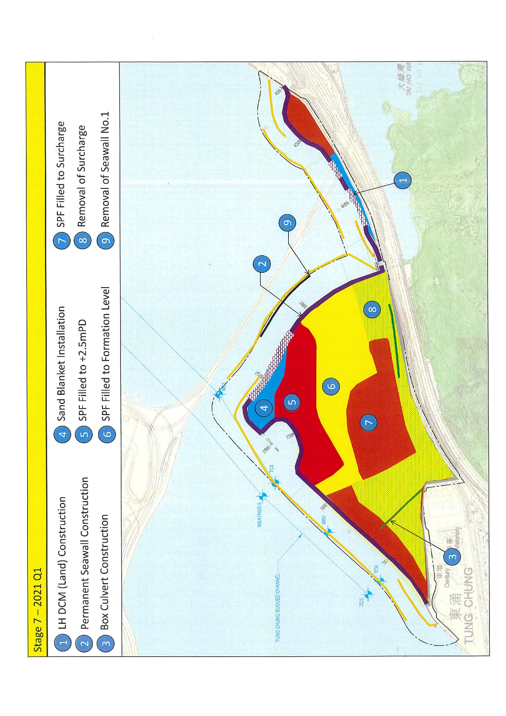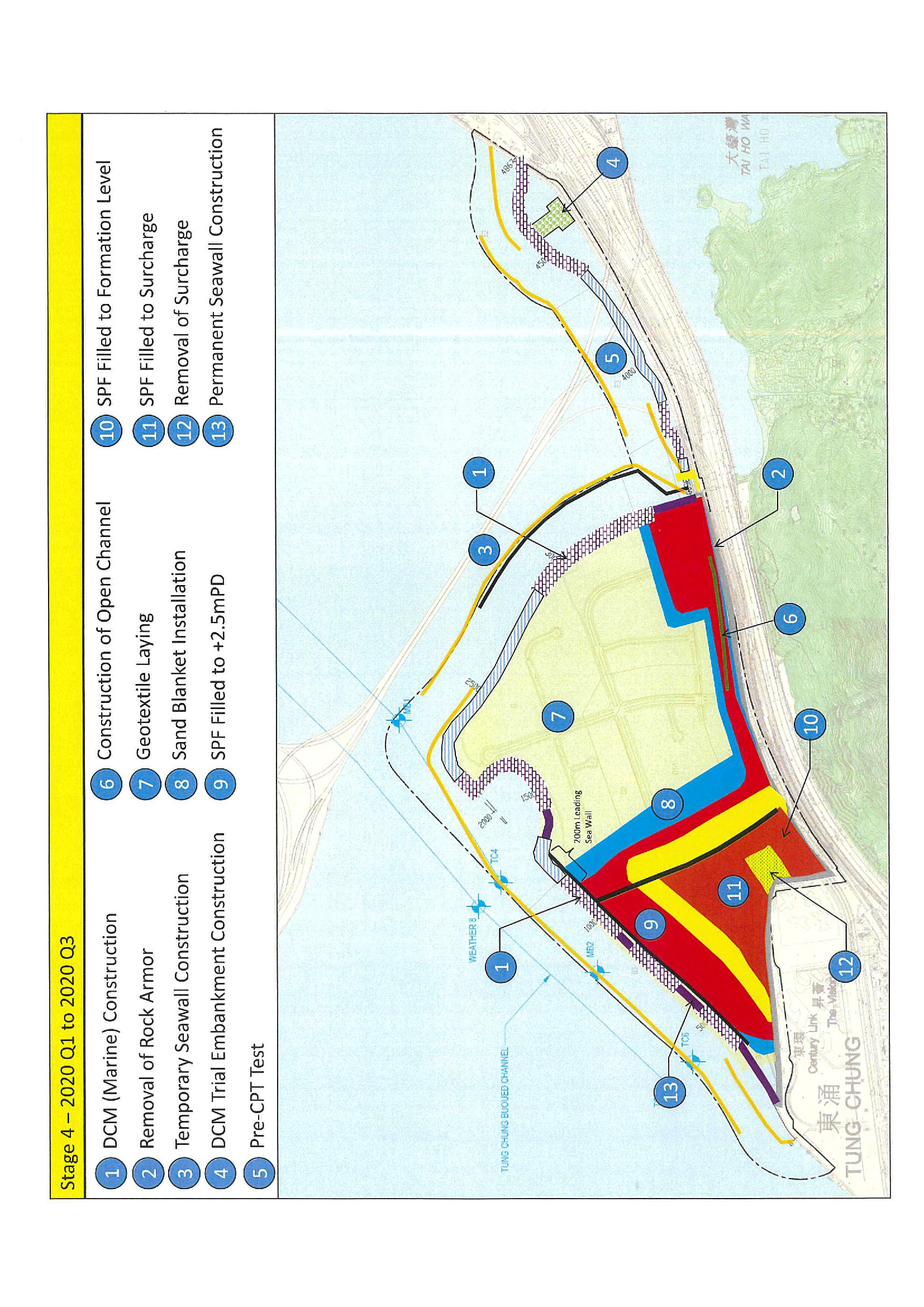 a) Reclamation of the seabed by a non-dredged method at Tung Chung East (TCE) to form a total of about 130 hectares of land;