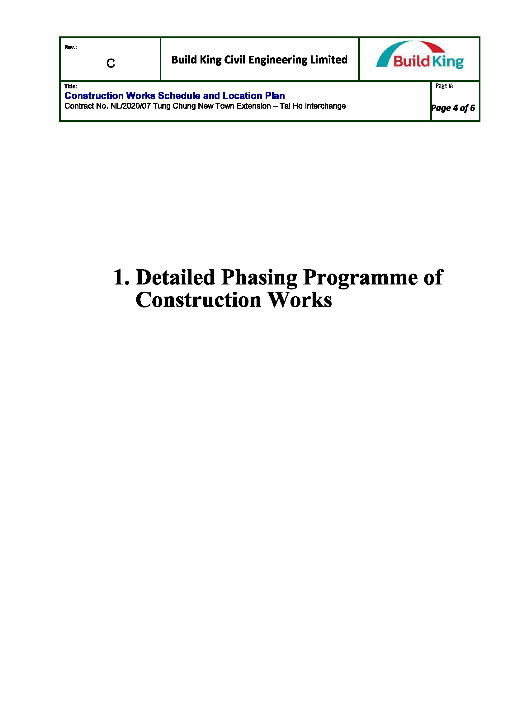 Build King Civil Engineering Limited (BKCEL) is the contractor appointed to undertake the construction of Tai Ho Interchange connecting North Lantau Highway, Road P1 and Cheung Tung Road, construction of a section of dual two-lane Road P1 between Tung Chung East and Tai Ho Interchange, laying of fresh water, salt water and sewage rising mains, associated civil, geotechnical and landscaping works for the Project. The works mainly comprise:-