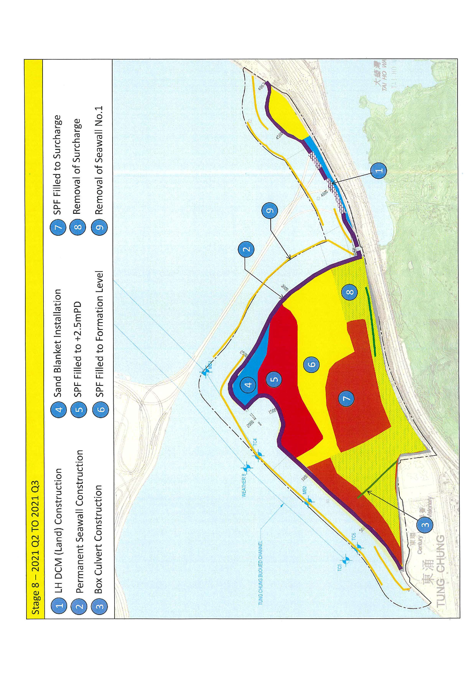 a)         Reclamation of the seabed by a non-dredged method at Tung Chung East (TCE) to form a total of about 130 hectares of land;