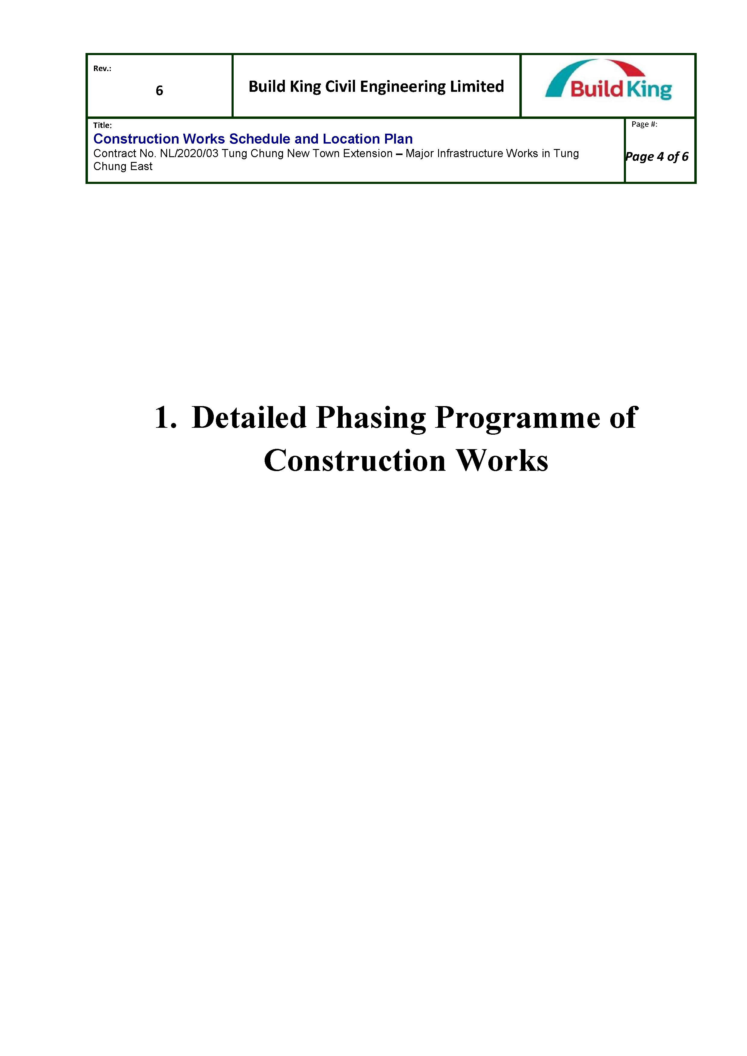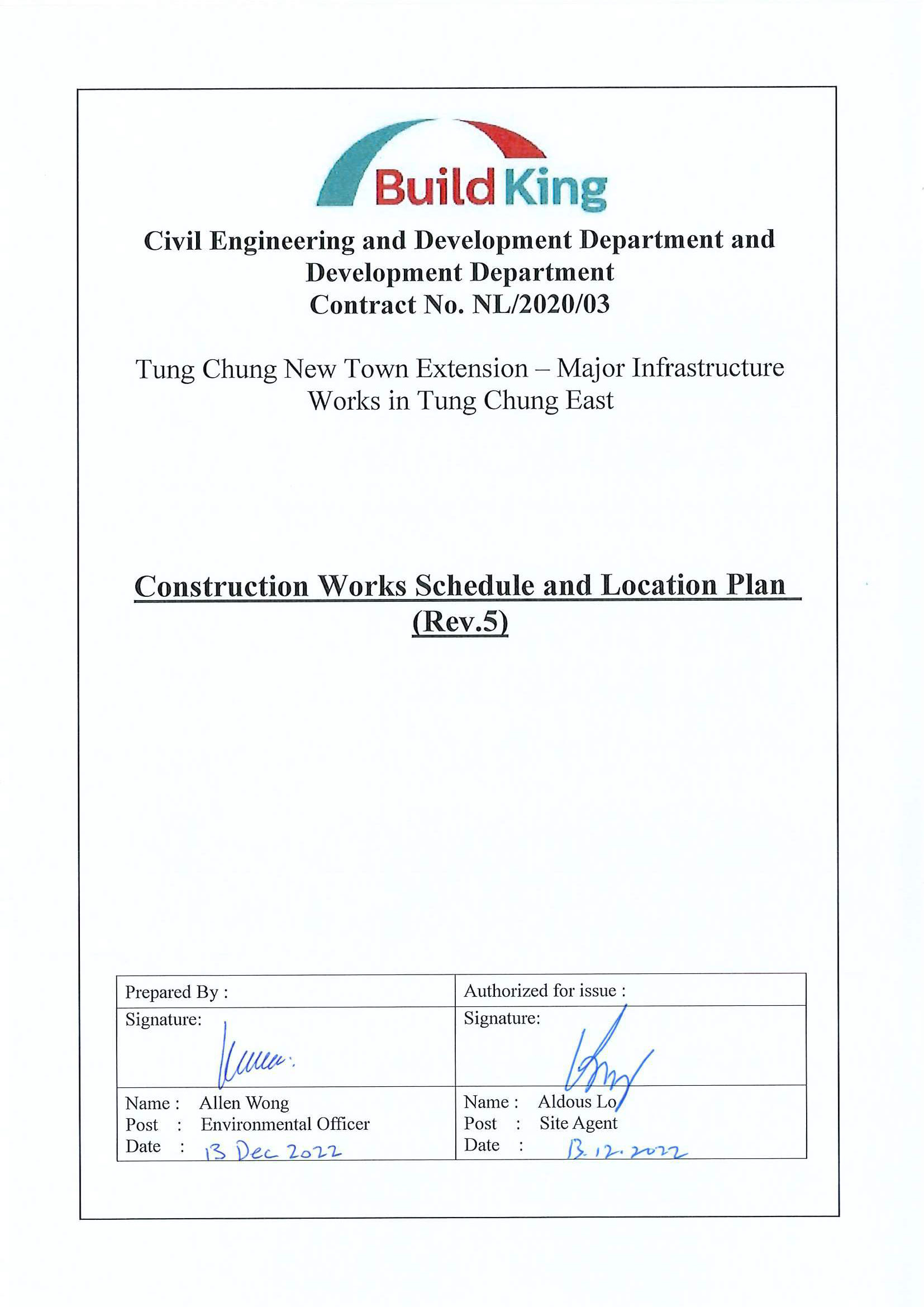 The Environmental Impact Assessment (EIA) Report (Register No.: AEIAR-196/2016) prepared for the “Tung Chung New Town Extension” (hereinafter referred to as “the Project”) has been approved by the Director of Environmental Protection, and an Environmental Permit (EP) (Permit No.: EP-519/2016) has been issued for the project under the Environmental Impact Assessment Ordinance.  This submission of Construction Works Schedule and Location Plans has been prepared in accordance with Condition 2.12 of the EP which stipulates
