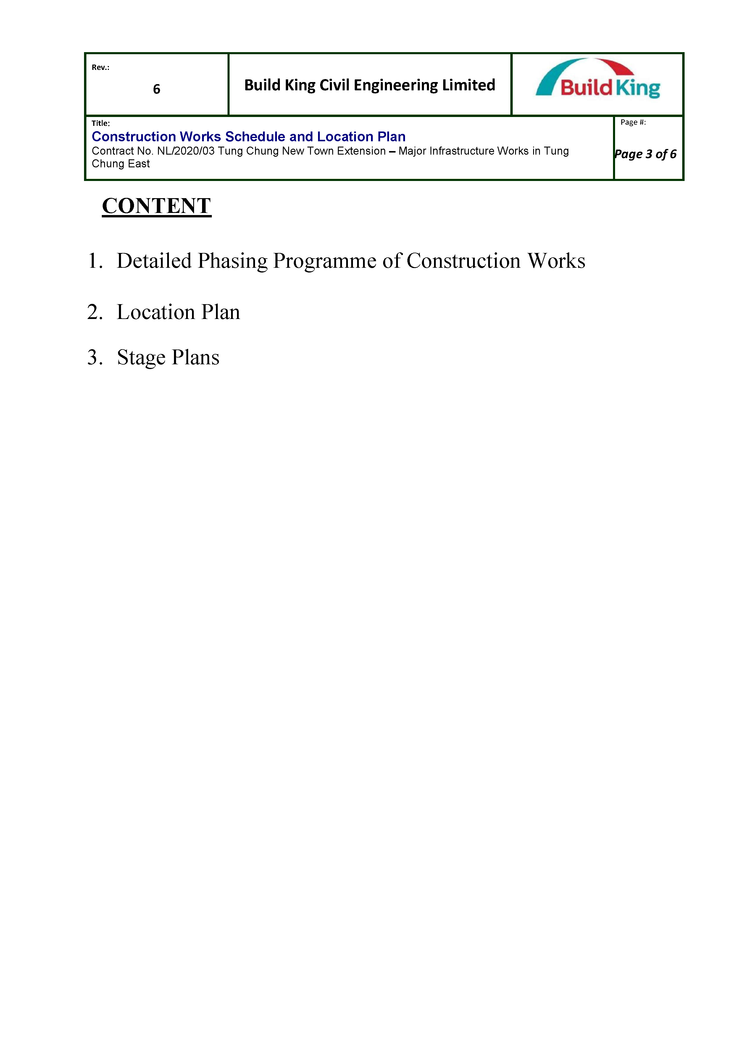 Build King Civil Engineering Limited (BKCEL) is the contractor appointed to undertake the construction of main infrastructure works for the Project. The works mainly comprise:-