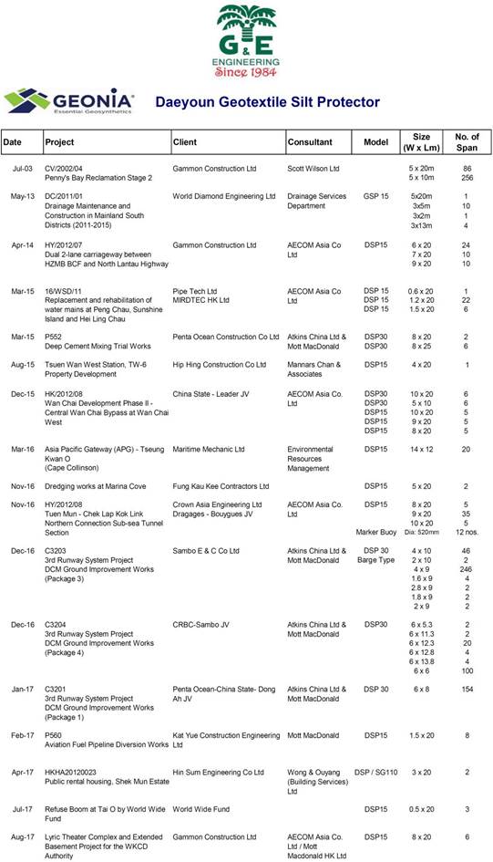 perimeter silt curtain are marine DCM works and sand placing works. All the DCM
