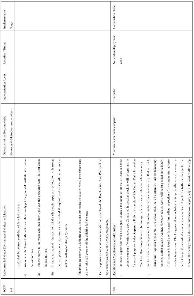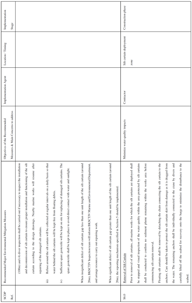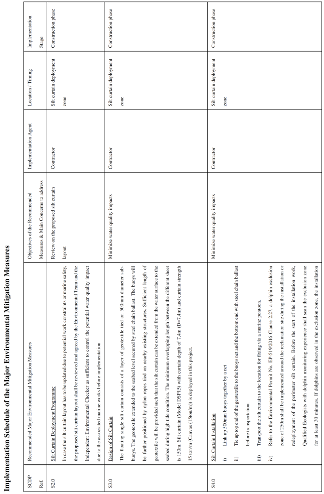 single silt curtain type) will be deployed during all reclamation works (see Appendix C6 for the Silt Curtain Layout).