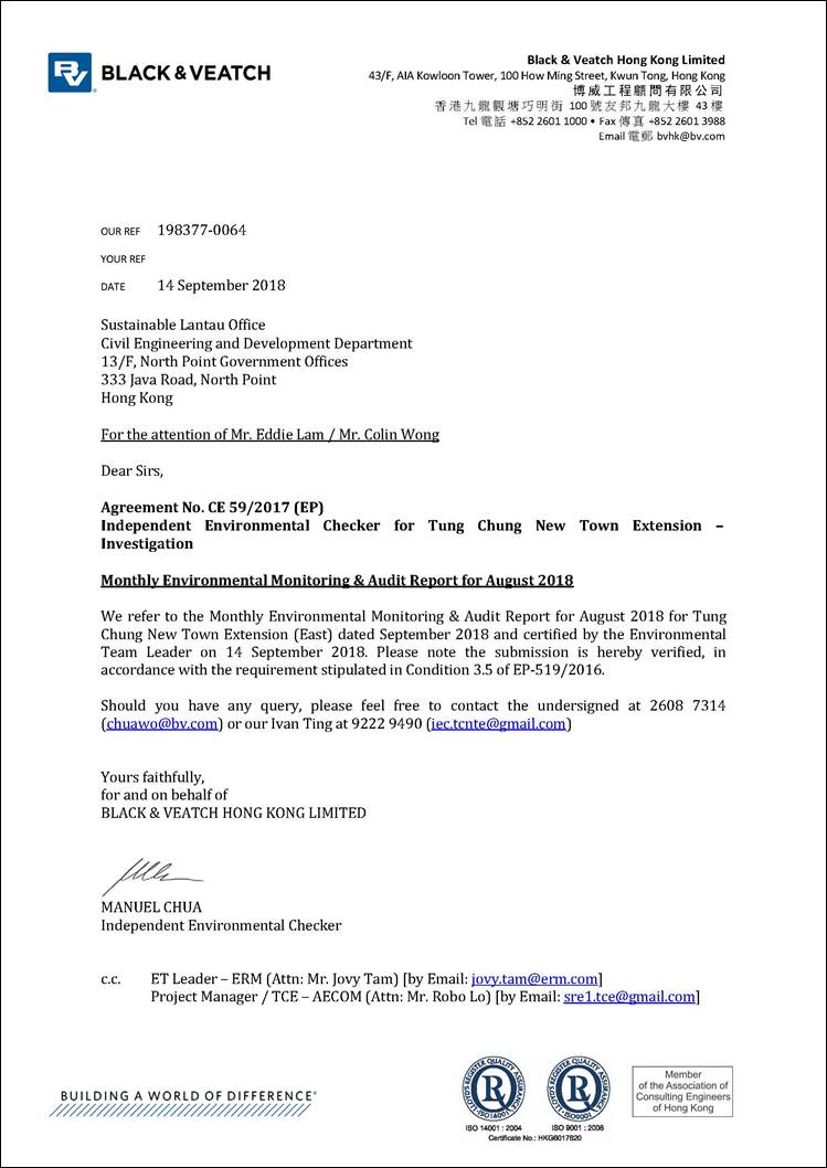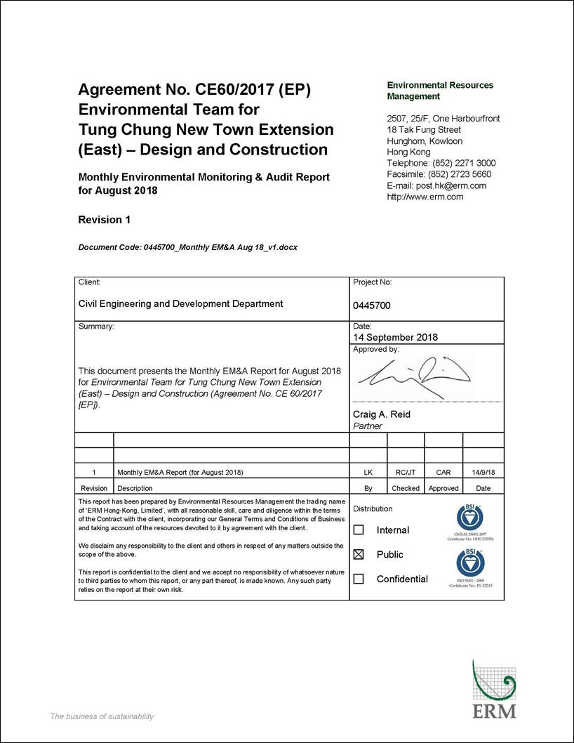 This EM&A Report presents the findings of the EM&A activities undertaken during the period from 1 to 31 August 2018 in accordance with the Updated EM&A Manual and the requirements of the Environmental Permit (EP-519/2016).