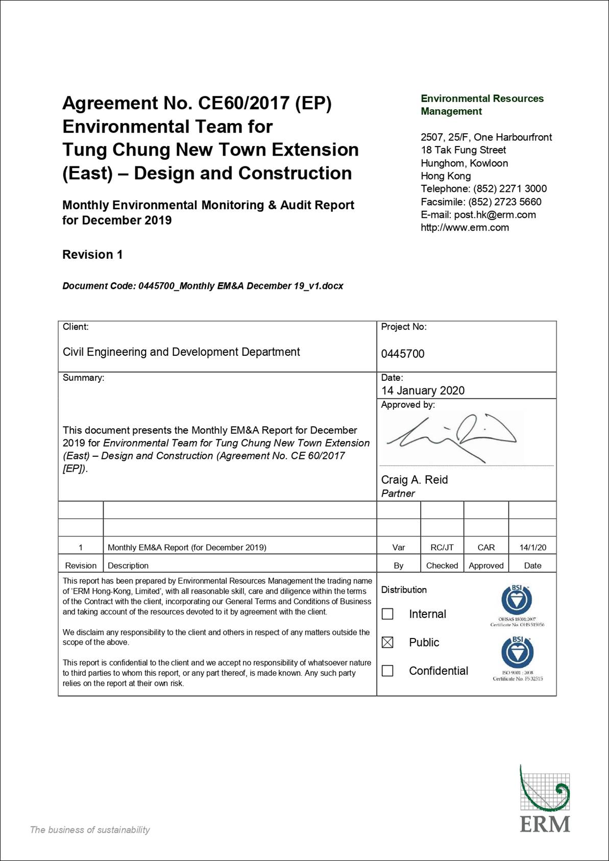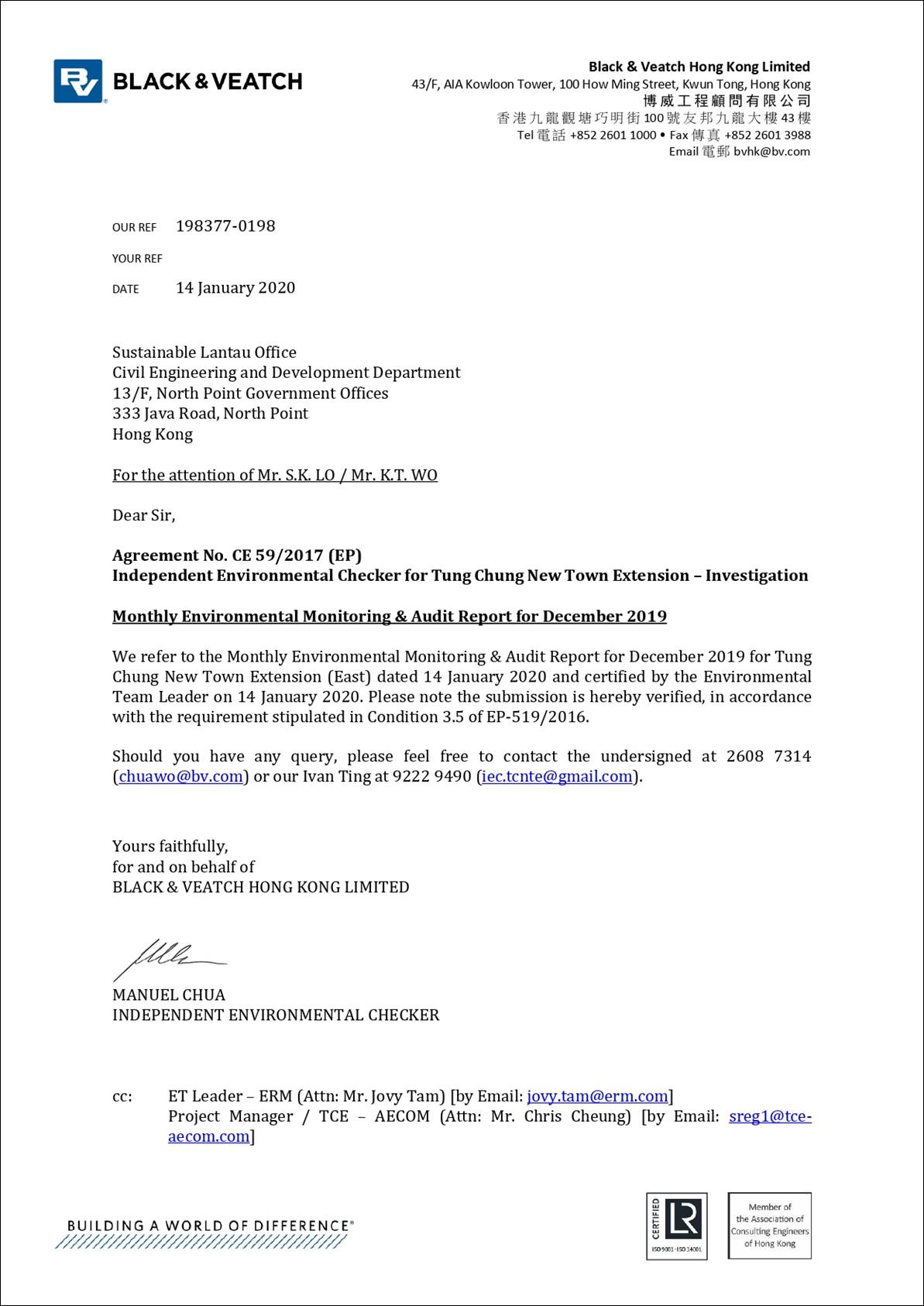 This EM&A Report presents the findings of the EM&A activities undertaken during the period from 1 to 31 December 2019 in accordance with the Updated EM&A Manual and the requirements of the Environmental Permit (EP-519/2016).
