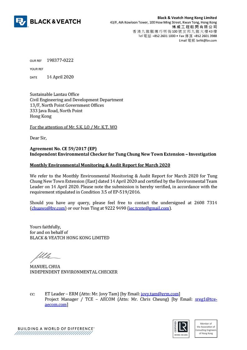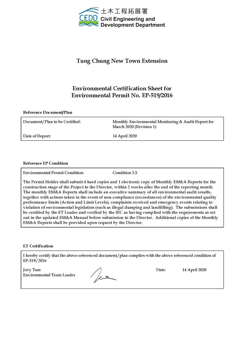period from 1 to 31 March 2020 in accordance with the Updated EM&A Manual