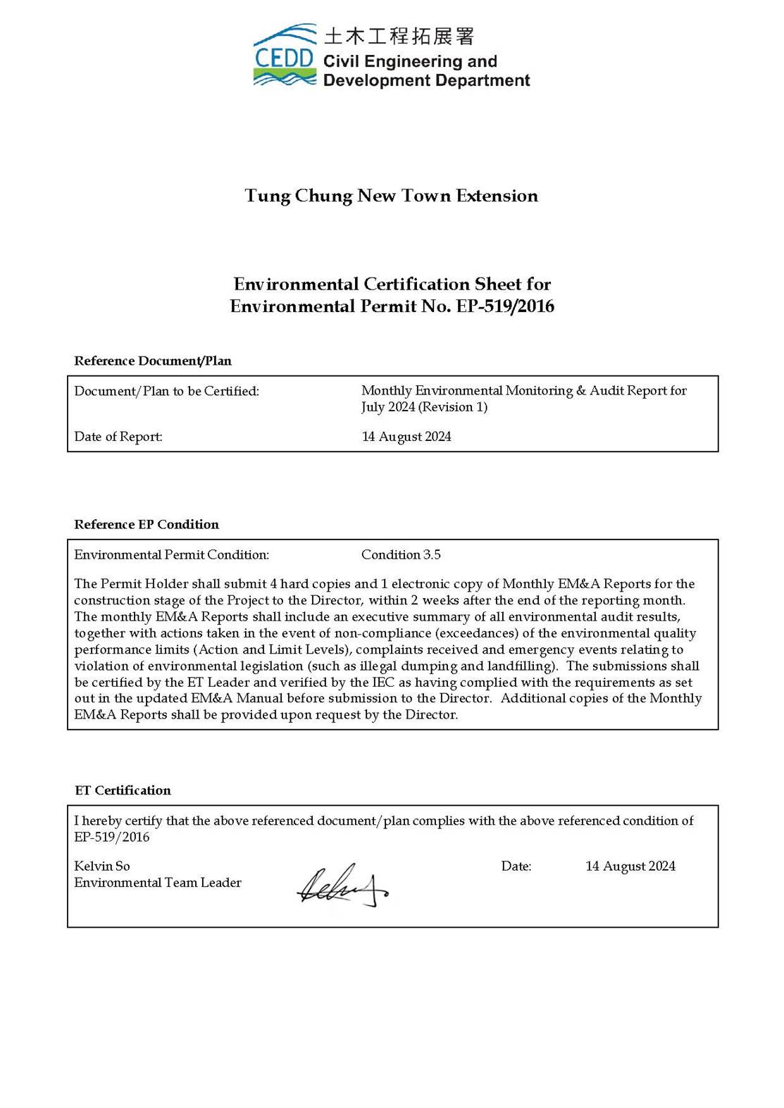Tung Chung New Town Extension. Deposited to EPD under EP-519/2016