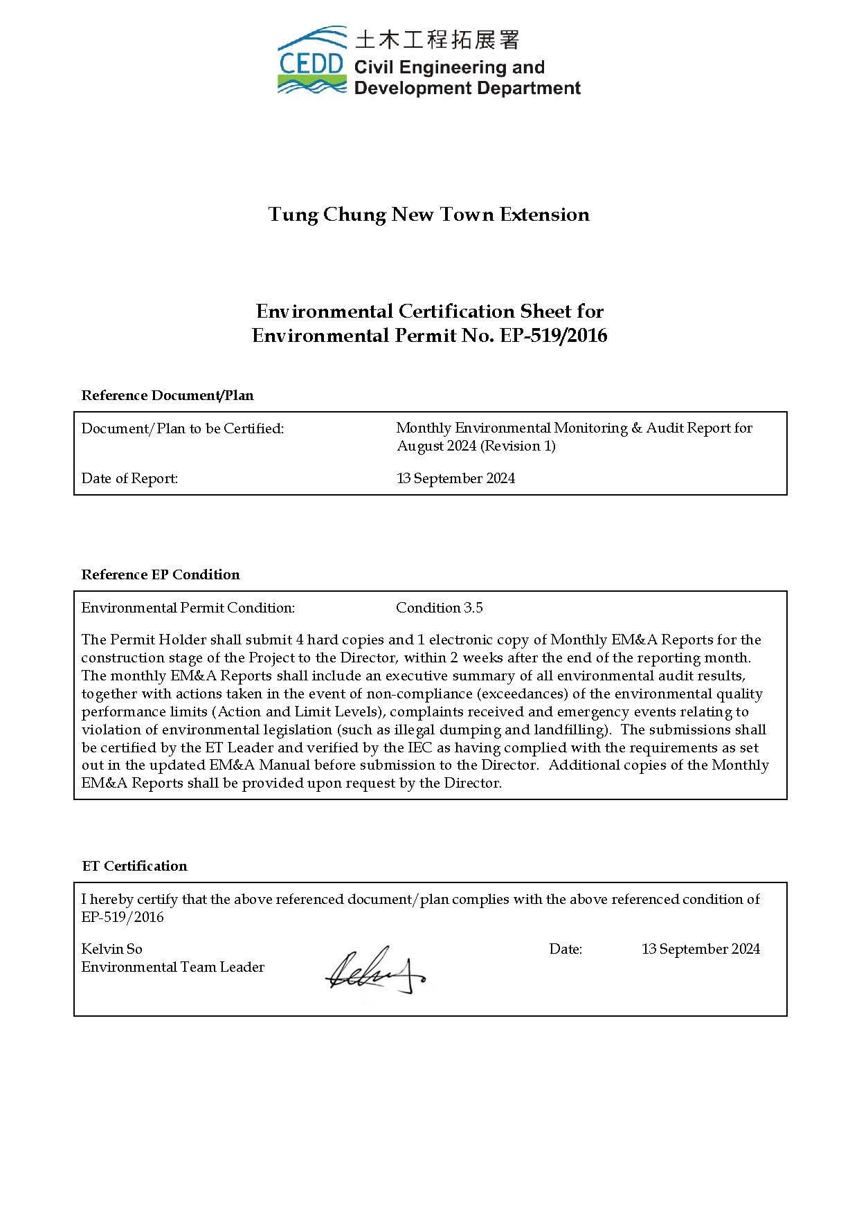 Tung Chung New Town Extension. Deposited to EPD under EP-519/2016